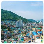 - Gamcheon Culture Village Gamcheon Culture Village dazzles with vibrant murals, mosaic staircases, and quirky art installations in a hillside neighborhood. Colourful alleys wind through galleries, local shops, and panoramic harbor views, culture, and scenery. (Time required: 1–1.5 hours / Airport to here: LRT to Sasang, Metro Line 1 to Toseong Station, then local bus 2 to Gamcheon Village, approx. 1 h 10 m)