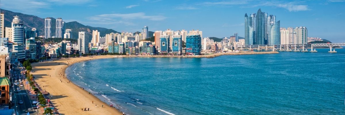 - Haeundae Beach Haeundae Beach offers a stunning stretch of golden sand perfect for relaxing strolls or sunbathing. Lively cafes, seafood stalls, and nearby Dongbaek Island add cultural and scenic charm and views. (Time required: 1–2 hours / Airport to here: Busan–Gimhae Light Rail to Sasang, transfer to Metro Line 2 to Haeundae Station, approx. 1 hour)