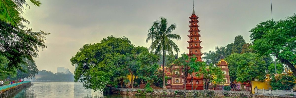 - West Lake & Tran Quoc Pagoda Explore West Lake and the Tran Quoc Pagoda, wandering paths, admiring ancient Buddhist architecture on an island, enjoying waterfront views of lotus blooms, and discovering serene temples nestled in greenery. (Time required: 2 hours. / Airport to here: Bus 86 to Long Bien then bus 34 to Tay Ho (75 min) or taxi (~40 min))