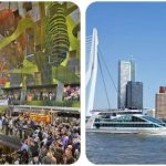 • Markthal Rotterdam Markthal Rotterdam is a stunning indoor market hall featuring local food stalls, vibrant murals, and unique shops. Enjoy Dutch delicacies from artisanal cheese to stroopwafels, fresh coffees, mini sweet pancakes. (Time required: 1½ hours. / Airport to here: Bus 33 to Rotterdam Centraal (20 min), tram 10 to Blaak (10 min) or taxi (20 min))