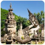 - Buddha Park (Xieng Khuan) Located 25 km southeast of the city, this sculpture garden features over 200 giant concrete Buddhist and Hindu figures, including a reclining Buddha. Ideal for photography, peaceful strolls and cultural exploration. (Time required: 2 hours / Airport to here: By taxi (40 min) or tuk-tuk (50 min))